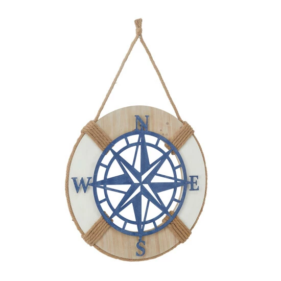 Add some style to your wall with this unique lifesaver wall decoration with a middle compass that will provide a fine decoration worth to your place. Create a balanced space in the most creative way with this expertly crafted wall dรฉcor for captivating focal point. Place this on any blank wall space adding both texture and depth to your home. This item comes shipped in one carton. Item comes with a burlap rope at the top for easy and secure hang. Nautical Setting. A great versatile decor for indoor or outdoor display but are not rust or weather resistant.