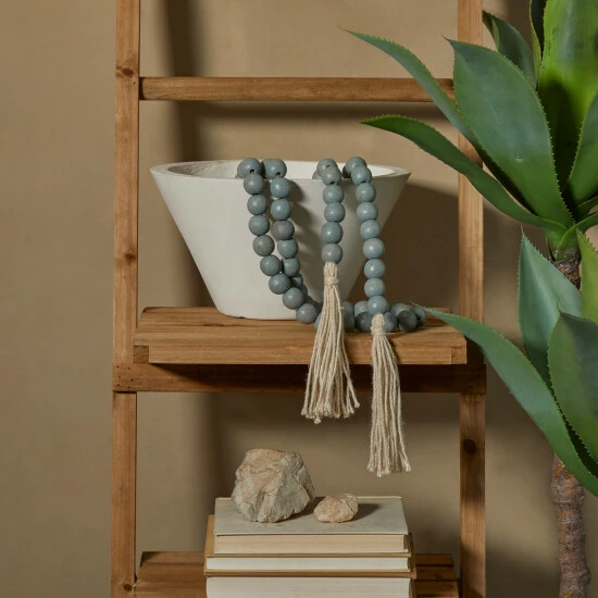 A warm and welcoming way to elevate the look of your tablespace and complement your existing dรฉcor. Give your surface space a finishing touch with these beautifully crafted decorative garlands. Wood and cotton garland for home that brings a cool boho atmosphere anywhere inside your house by hanging it horizontal or vertical on your walls. This item ships in 1 carton. Decorative garland makes a great gift for any occasion. Due to the handmade nature of this item, no two will be alike, there will be slight differences in shape, size, and color. Suitable for indoor use only. Made in India. Bohemian style.