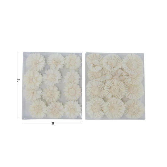 Set of 2 Traditional 7″ rectangular sola flower box, 100% Sola material features a white-finished full-bloomed sunflower sculpture