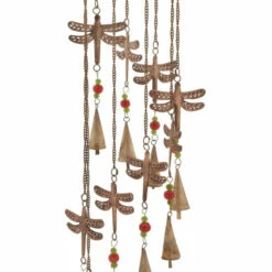 It is a great addition to your home decoration and will surely complement your existing furniture. A light and delicate piece to create a whimsical atmosphere anywhere in your home. Resonate with the sounds of nature with this windchime hanged on your eclectic-themed home space. Easily hang to nails or screws with its single ring hook. This item comes shipped in one carton. Features nine spiraling dragonfly pendants. Easily hang to nails or screws with its single ring hook. Suitable for indoor use only. Made in India. Eclectic theme.. Eclectic design lets your personality shine in your home. This dragonfly windchime is intricately crafted and designed with solid iron and tinted glass. This windchime features a weathered matte brass finish. Brass bells creates a soft, soothing sound. It measures 5″L x 1″W x 36″H and weighs 1 lb.