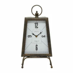 Placed on your console or coffee table, this table clock is sure to be a timeless addition to your home or office. Placed on your office or library shelves, tables, or consoles, this clock is sure make you on time for a style home. Use as an accent piece for rustic-themed homes and offices. Requires 1 AA battery, not included. This item comes shipped in 1 carton. Roman numbers are in black, with hash marks, on a white face. The clock mechanism runs silent. Suitable for indoor use only. Displays “Grand Hotel New York City” and “Standard Time 1870” typographies on the clock face. Rustic Design.