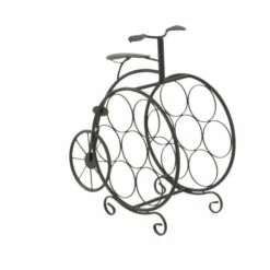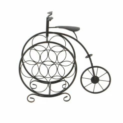 - Holds 7 wine bottles conveniently in an adorable penny farthing bicycle equipped with feet stand and handle bars