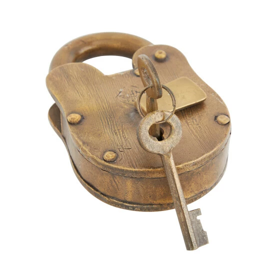 Add a timeless token on your console or coffee tables with this antique lock and keys set to give a hint of vintage appeal in your home space. Get creative with your display by adding lock and key to enhance the look of your table top. A sturdy and long lasting construction that for a long lasting display. This item comes shipped in one carton. Suitable for indoor use only. Made in India. Eclectic design.