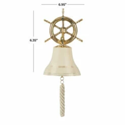 Indulge your imagination and creativity with this nautical bell displayed on your living room or bedroom walls. Make an instance home refresh with this charming wall decor for a welcoming appeal. Maximize your open wall space with this eye catching wall decor. Item comes shipped in one carton. Easy to hang with furnished holes for screws. Suitable for indoor use only. Made in India. Nautical design.