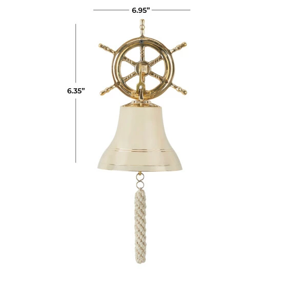 - A ship wheel background frame adds character to this bell decor together with a braided rope attached to its clapper