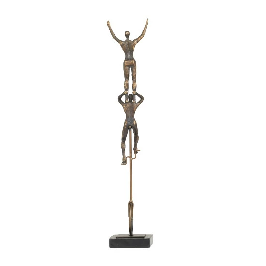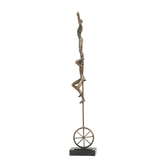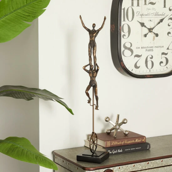 Give your counters, console, and coffee tables an eccentric and classic touch with this acrobat art Decor. This sculpture will elevate the look of any stylish home with its dimensions and textural appeal. An artistic display to showcase your personality and enhance the look of any open surface space. Designed with rubber stoppers on back frame to prevent scuffing and sliding. This item comes shipped in one carton. Suitable for indoor use only. Contemporary design.