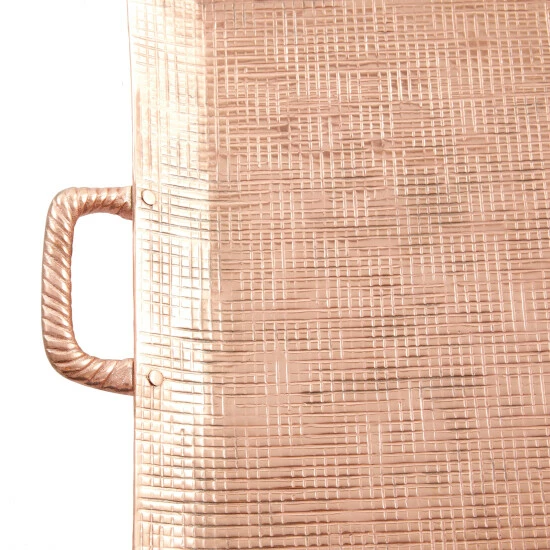 - These rustic style decorative trays feature rectangular surface with raised edges and square textured patterns along with twisted style side handles