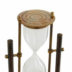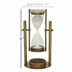 This rotating bronze hourglass sand timer is ideal for vintage, traditional, and antique-themed living spaces. Time is a universal constant which you do not have control of, but you can control what goes on your desk!. This classic timer will make heads turn towards any wall in your home. This item comes shipped in one carton. Suitable for indoor use only. Made in India. Traditional theme.
