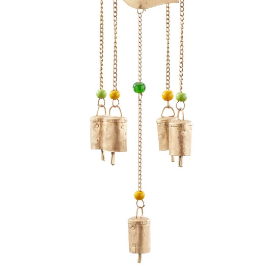 Let the wind give music to your ears as you hang this birdhouse windchime on the top of your doors, windows, and balcony area. A light and delicate piece to create a whimsical atmosphere anywhere in your home. The soothing sound of this windchime will keep you relax and rejuvenated throughout the day. This item is shipped in one carton. Iron is sculpted and chains are decorated to form a playful birdhouse windchime design. This windchime features a durable chain hanger for easy hanging via nail or hook. Suitable for indoor and outdoor use. Made in India. Rustic style.. A warm and cozy rustic interior design won’t be complete without this. This hanger windchime is made of high quality iron and glass beads. This outdoor birdhouse windchime features a bronze metal finish and multi colored glass bead finishes. This metal windchime features a birdhouse top design and decorative chime tails filled with beads, cylinder bells, cone bells, and a metal carved dove. Each item measures 5″L x 5″W x 36″H and weighs 1 lbs