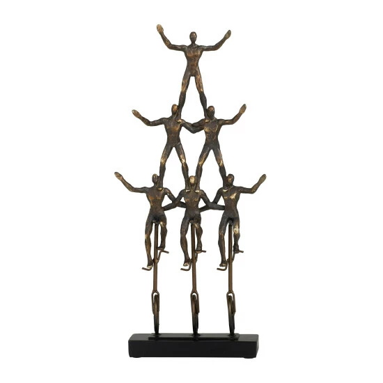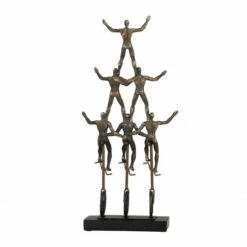 - A bronze stacked acrobats sculpture crafted of solid and lasting polystone material