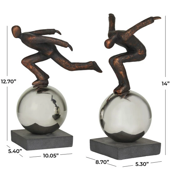 Place these bronze sculptures next to each other on a wide console table or as standalone next to other decor for an elevated look. Create a balance surface space and added dimensions with this beautifully crafted sculpture. An artistic display to showcase your personality and enhance the look of any open table top space. Designed with rubber stopper at the base that prevent scratching furniture and table tops, as well as sliding around. This item is shipped in 1 carton. Suitable for indoor use only. This item is a set of 2. Modern.