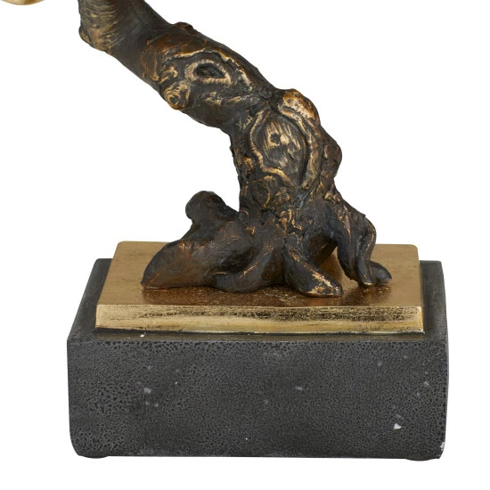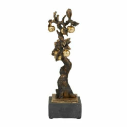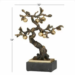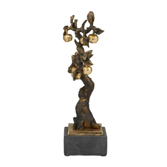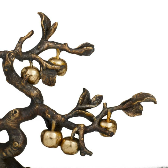 - This tree sculpture with fruits highlights a bronze finish that enhances contrast and depth in any room