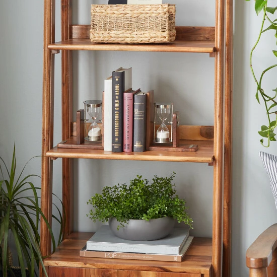 - This hourglass bookend set is crafted using aluminum and mango tree wood