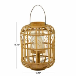 - A convenient faux leather handle complements the wicker structure of this bamboo lantern candle holder