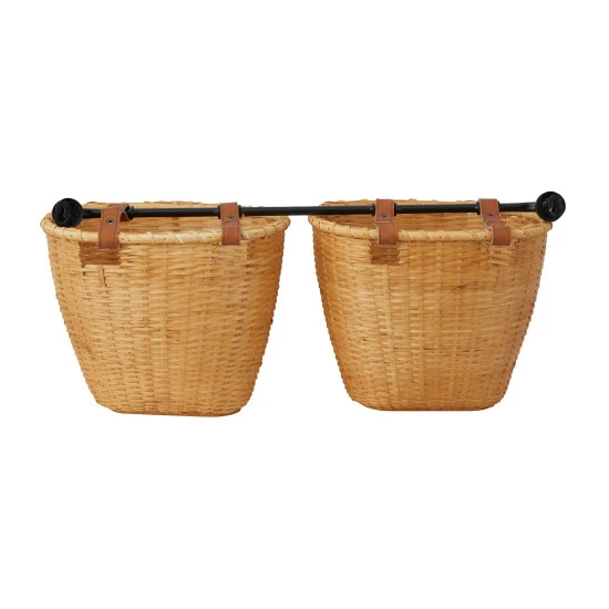 - Woven bamboo baskets function as shelves for this wall mounted organizer
