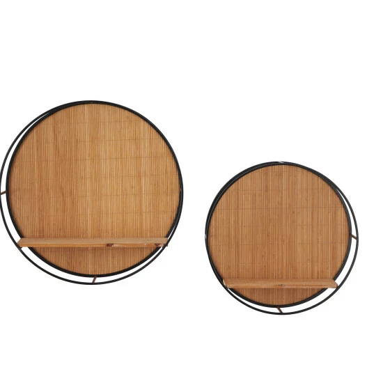 - Natural wood brown and ebony black finish highlights this wall shelf set
