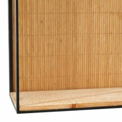 - Features an arch iron frame design with 1 large shelf space complemented by an elegant bamboo slat background