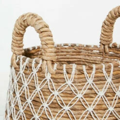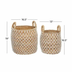 Organizing isn’t boring when you have amazing storage baskets to fill. Filled with shoes, books, blankets and more, these storage baskets are a stylish way to store your stuff. Use as charming and natural standalone or set of 2 organizer or Decor. Wipe clean with a dry cloth. Due to the handmade nature of this item, no two will be alike, there will be slight differences in shape, size, and color. Made in Indonesia. This is a set of 2 nesting storage baskets. Coastal design. This item ship in one carton.