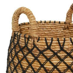- These boho baskets are woven banana leaf ropes extending into 2 side handles