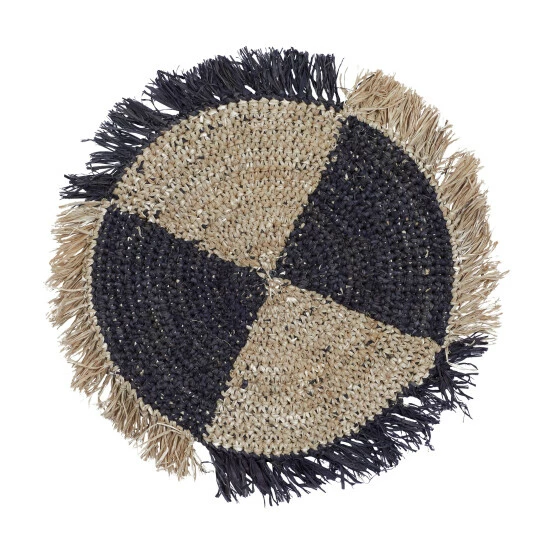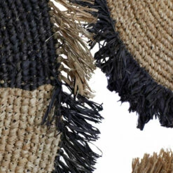 - These circular pieces are made of durable rattan and feature frayed edges for a boho aesthetic