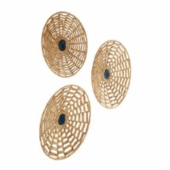 Bring earthy hues and rustic textures to your walls with this set of 3 round seagrass wall decor. Handwoven in Vietnam using water hyacinth, these wall decors feature natural woven wicker in hues of blue and green in the inner rings and beige and brown finish on the outer rings. The organic theme of the wall decor amplifies the style of natural and coastal style homes. Due to the handmade nature of this item, no two will be alike, there will be slight differences in shape, size, and color. Suitable for indoor use only. Set of 3 woven seagrass wall decors. This item comes shipped in one carton. Includes hanging hardware for easy hanging.