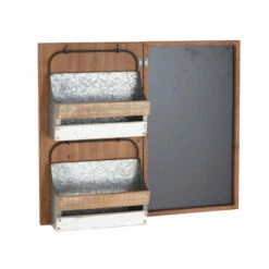 This wall-mounted chalkboard with organizer is a medley of solid wood and galvanized metal