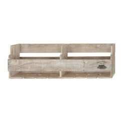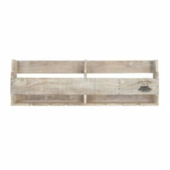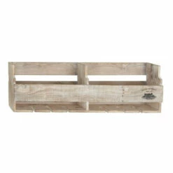 - This wall wine bottle and glass holder features a whitewashed natural wood brown finish