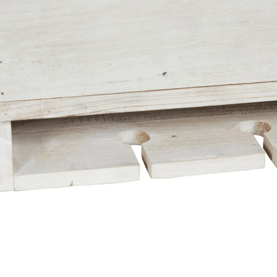 Display and organize your wine bottles and glass with this whitewashed wood brown farmhouse cabinet holder mounted on the walls of your home space. Display your wine bottles with style and make everyone thirsty with envy. Looks stylish in your living room or kitchen as a way to display and serve your favorite wines. This item comes shipped in one carton. Wall wine rack holds 10 wine bottles and 6 wine glasses. Suitable for indoor use only. This wine holder can contain up to 10 standard size wine bottles. Textural light-colored fir wood with “CHATEAUX MONTREAUX GRAND VIN” and an illustration in black paint. Farmhouse-themed style. Includes hanging hardware for easy hanging.