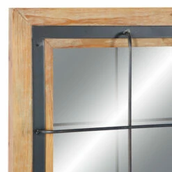 Add some style to your entryway, lobby, living room, or bedroom with this striking metal wall mirror. This accent piece features brown square wooden frame, black metal inset frame, and black grid pattern design. With its impressive look, this stunning mirror suits any home with an industrial interior. Apart from decorating your home, the purpose of this mirror is to bounce back outdoor light to a small room to make it look bigger. Pair this decorative wall mirror with house plants or other wall decor accent pieces to blend everything together perfectly. Ready to hang with attached D-ring hardware. Suitable for indoor use only. This item comes shipped in one carton.