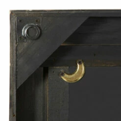 - This accent piece features a brown square wooden frame and black metal inset frame
