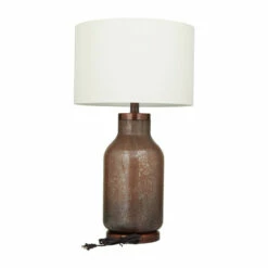 An ombre brown glass table lamp that brings charm and a modern appeal to any room for an instant decor upgrade. This eye catching lamp makes a charming and chic addition to your surface space and beautifully illuminate its surrounding area. Bring a finishing touch to your home with an inviting appeal with this accent table lamp. Designed with black stopper at the base that prevent sliding around as well as scratching any surface. Comes with 1 socket for medium-sized E26 bulbs. Bulbs included. This item comes shipped in one carton. Suitable for indoor use only. An accent piece featuring a white round-shaped shade. Power cord on/off toggle switch. Cord length measures approximately 60″. Modern Inspired.