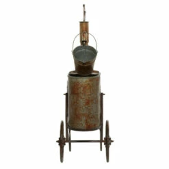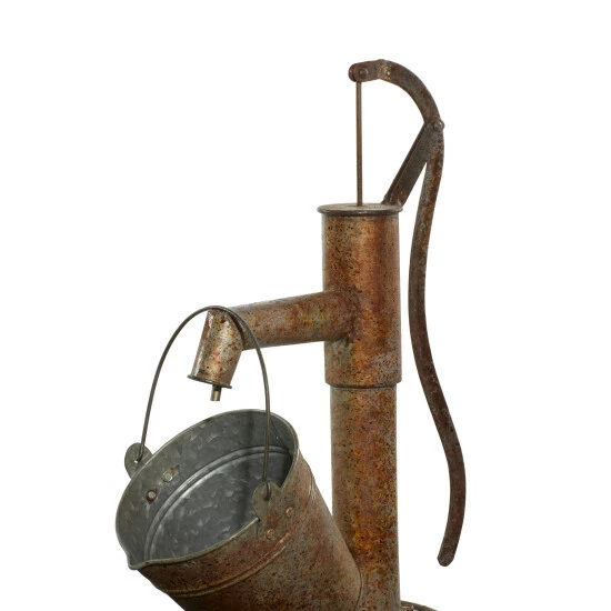 Treat your vintage inspired living space with this unique hand pump fountain designed to be focal point in your living room. This metal decorative piece features an old hand pump with a pail hanging on the spout and a large metal tub. The water comes from the hand pump, falls into the pail, down to the tub and then back up to the pump again. This piece will certainly bring a piece of the vintage rural life into your home. This item ships in 1 carton. Suitable for indoor and outdoor use. Farmhouse-themed style.