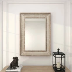 - Large wall mirror measures 31″L x 2.5″w x 43″H and weighs 22.3 lbs.