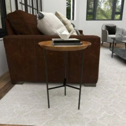 Small wood table complements modern and industrial style spaces. Use it as an accent piece in the living room, library, bedroom, waiting areas, or hallways of you home. A compact friendly table providing you with additional storage space any where in your home. This item comes shipped in one carton. Due to the handmade nature of this item, no two will be alike, there will be slight differences in shape, size, and color. Suitable for indoor use only. Made in India. Industrial theme. Maximum weight limit is 100 lbs