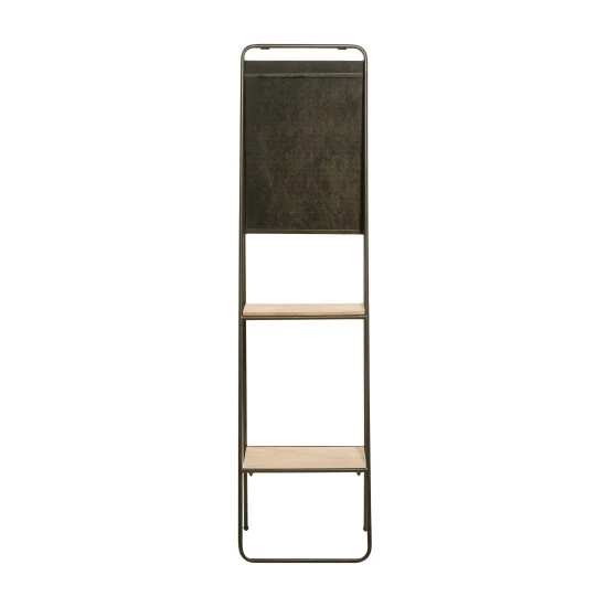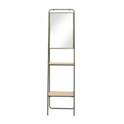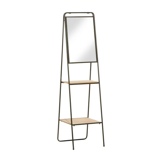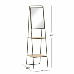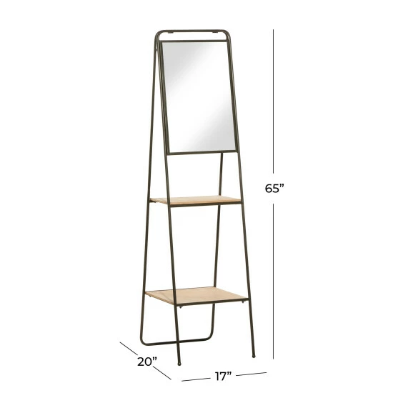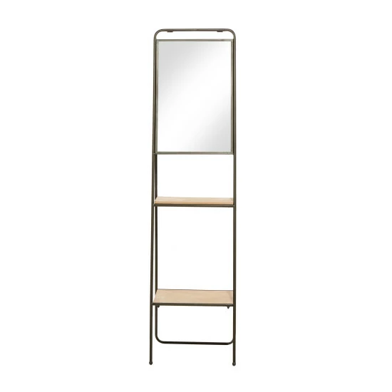 Add some style in your shabby chic inspired living room by displaying this wall mirror and shelf combination on an empty corner for an easy boost in style and elegance. Features a shabby chic style inspired design for that elegant vibe. Features an industrial inspired design to make your space unique. Maximize your wall space to create depth, storage and balance with this piece. This item is shipped in one carton. Shelves are mounted on the metal frame. Suitable for indoor use. Each shelf can hold up to 25 lbs. This item includes 2 levels of shelves. Designed with an industrial theme.. An industrial inspired design provides a reclaimed feel to your home with a sophisticated comfort. This wall mirror with shelf is made from the finest wood and metal materials. It comes in a light brown finish on the shelf surfaces and a black finish on the metal frame. This chic piece features a rectangular mirror and two tiers of shelf surfaces for all your organization or display needs. Each item measures 64.75″ x 16.63″ x 19.50″, and weights 20.00 lbs