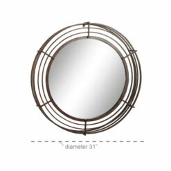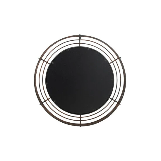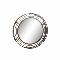 - This round mirror is built from strong iron bars welded together to form a cage-like frame, the circular reflective glass mirror measures 23″