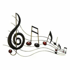 This musical wall decor is ideal for spaces with light-toned interiors that attract natural light. Give your wall some rhythm with this musical wall sculpture Decor. Features 5 wavy iron rods designed as frame. This item comes shipped in one carton. Give your wall some rhythm with this musical wall sculpture Decor. Item comes with metal loop for easy and secure hang. Suitable for indoor use. Traditional theme.