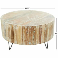 - Mango wood block table showcases its organic round form with smoothened edges and soft, whitewashed vertical tree linings in various hues of brown to bring a sense of nature to your home