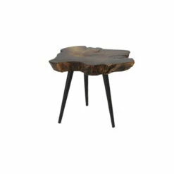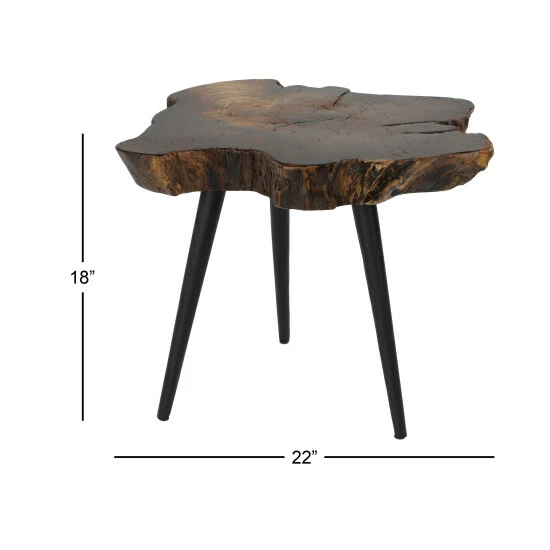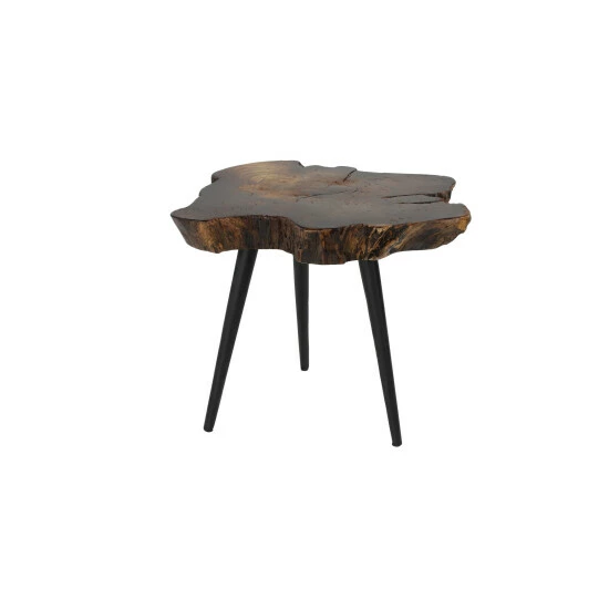 From the live edge wood silhouette to the warm earthy hues, this rustic table brings the organic beauty of the outdoors into your home.Use it as an accent piece in the living room, library, bedroom, waiting areas, or hallways of you home. A compact friendly table providing you with additional storage space any where in your home. This item comes shipped in one carton. Due to the handmade nature of this item, no two will be alike, there will be slight differences in shape, size, and color. Suitable for indoor use only. Due to the live edges of the piece, each is unique, so no two products will have an identical pattern, shade, or cut. Item has maximum weight limit of 100 lbs. Made in Indonesia. Contemporary theme