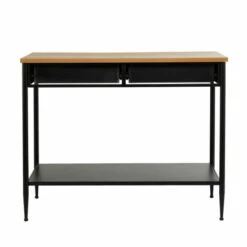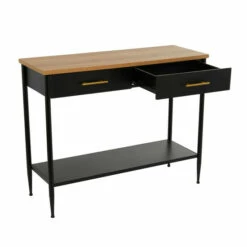 Bring style and convenience to your indoor aesthetics with this contemporary side accent table placed in your living room, entryways, or hallways. Bring a finishing touch to your home with an inviting appeal with this console table. A sturdy and long lasting construction for a solid display of all your decors and belonging. Designed with black rubber stoppers at the base that prevent scratching furniture and table tops, as well as sliding around. Item comes ships in one carton. Built with 2 pull out drawers. Suitable for indoor use only. Comes with a bottom shelf. Contemporary design. Holds up to 100 pounds.