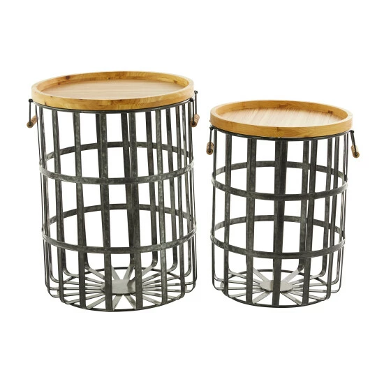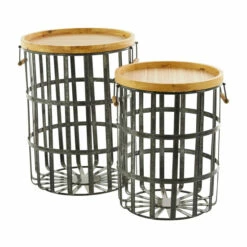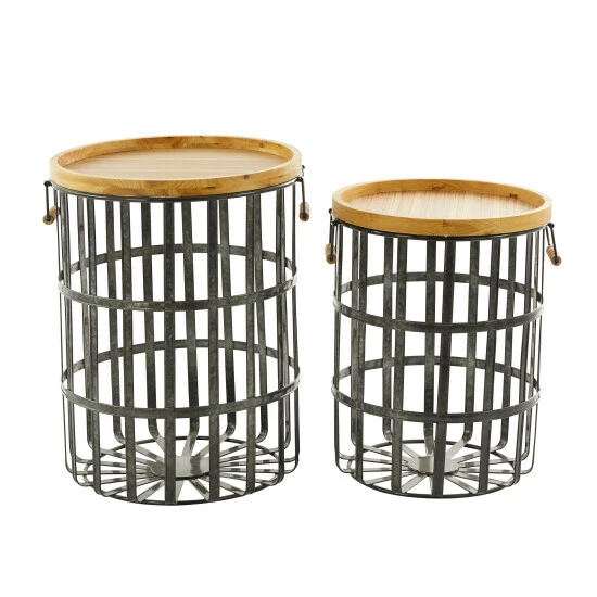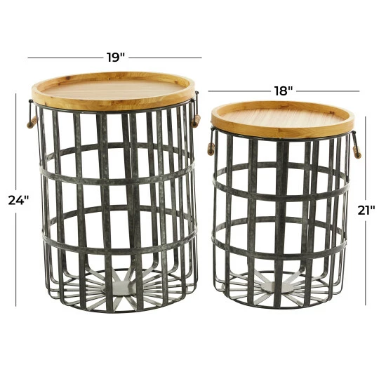- A galvanized body frame highlight the natural wood brown polished lid of each of these wire storage baskets