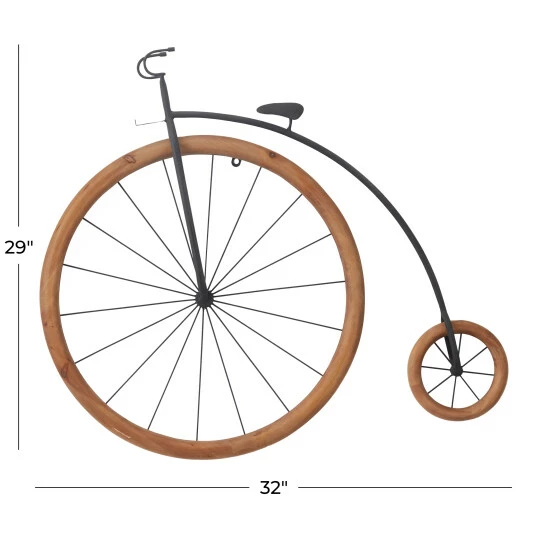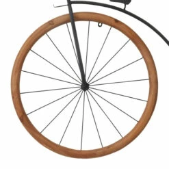 - Natural wood brown wheels and a black finished body highlights this bicycle wall sculpture