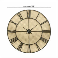 A warm and cozy rustic interior design won’t be complete without this rustic style brown and black metal perforated wall clock mounted on the walls. This metal wall clock features a nice warm brown hue on the clock face and black finish on the hour markers and the hour and minute hands. The entire clock face also features a mesmerizing perforated pattern which adds to its rustic charm. The hour markers are in Roman numerals in complement with the overall theme. The rustic appeal of this wall clock will look satisfyingly good on your neutral toned walls. 1 AA battery required (not included). This item ships in one carton. Features Roman numerals for the hour markers. The clock mechanism runs silent. Metal secure loop backing for easy hang. Suitable for indoor use only. Traditional theme.. A traditional inspired designed for classic harmony full of friendly charm. This wall clock are constructed of a solid iron for durable structure. Brown clock face, and black clock hands finish. Features a perforated pattern on the clock face. Item measures 35″D x 3″W and weighs 8 lbs