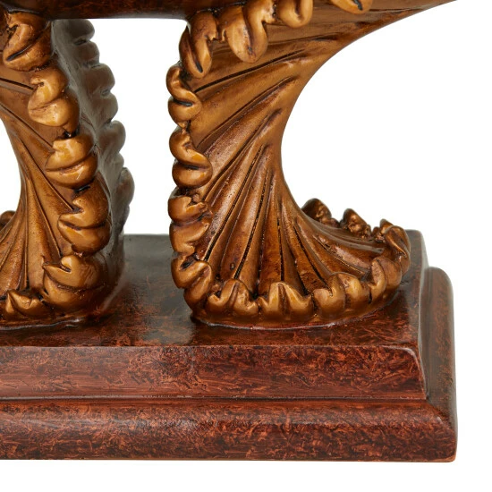 - A polystone decorative bowl that comes in brown and bronze finishes for a traditional look