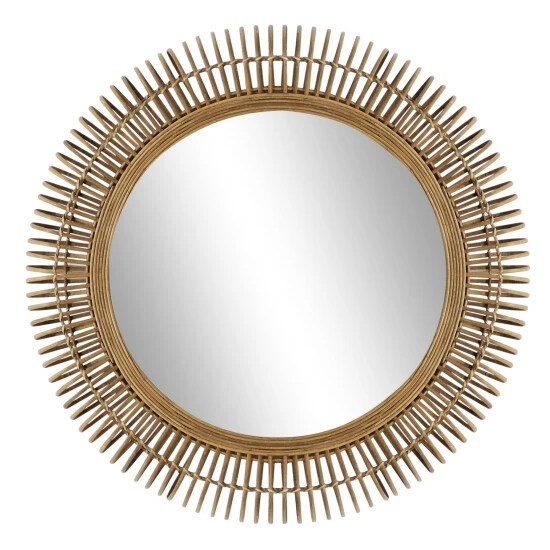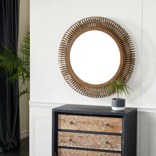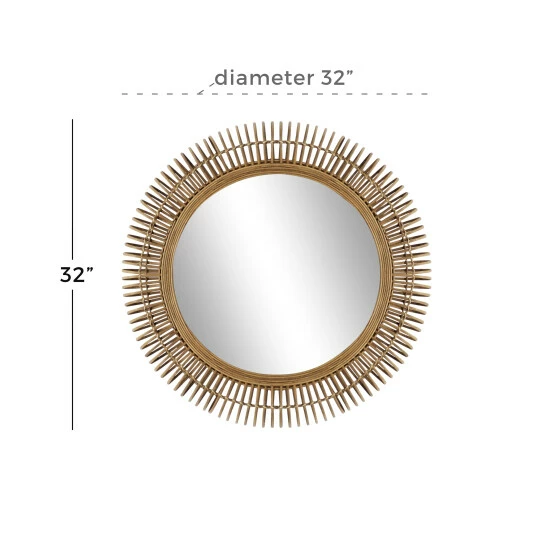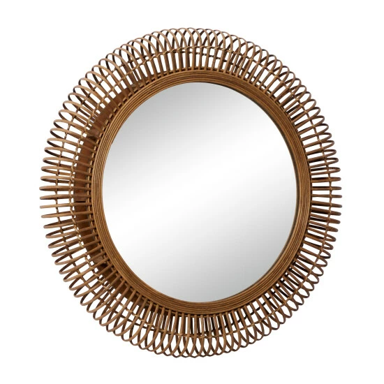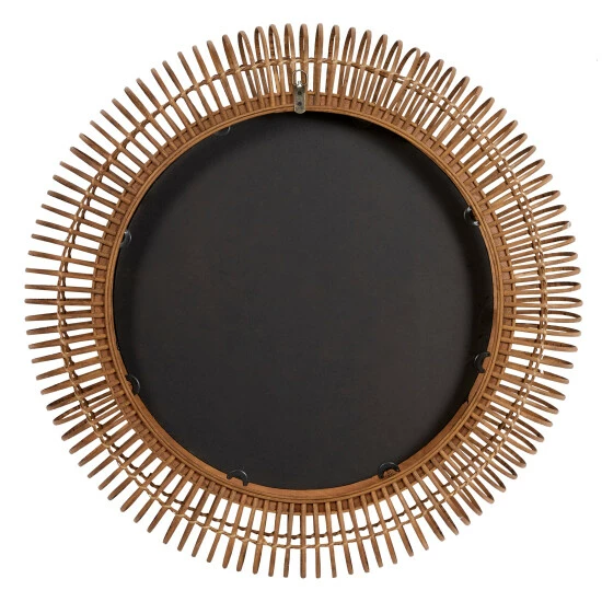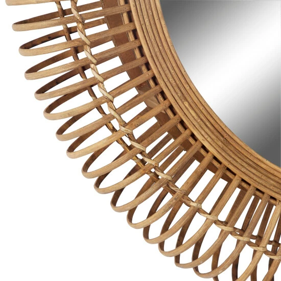 - This captivating natural wall mirror features a light brown rattan finish and a reflective mirror finish