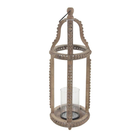 Delight your guests and make any occasion extra special by adding a lighted or flameless candle to this lantern. Made with a sturdy base, it is perfect for creating an elegant atmosphere at your table top or mantel. Display as accent piece décor to fill your home corners. This item ships in 1 carton. Suitable for indoor use only. Farmhouse-themed style. Lantern pillar candle holder with 1 pillar candle each.