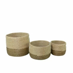 Give any Bohemian-themed home a final touch by displaying this set of seagrass storage baskets that can hold plants or any of your belongings. Keep your space tidy and neat with the help of these storage baskets. Place them by your bedside, laundry room or living room to keep your space free of clutter. Items come shipped in one carton. Due to the handmade nature of this item, no two will be alike, there will be slight differences in shape, size, and color. Suitable for indoor use only. Made in Vietnam. A set that comes with 3 seagrass storage baskets. Bohemian Setting.