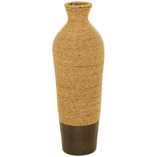 - Brown round vase is made of seagrass, iron, and polyethylene materials for robust structure