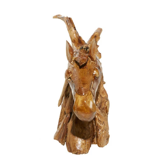 Give your bookshelf, office, night table or coffee table a little whimsy with this sculpture. Let these accent pieces provide a sense of style to your home atmosphere by displaying them on top of a shelf, countertop, mantel, or an accent table. This natural, earthy wood decor makes a great addition to spaces that need more grounding and nature; also makes a wonderful gift for horse lovers. Nails secure the various parts of the sculpture for a long lasting enjoyment. This item is shipped in one carton. Due to the handmade nature of this item, no two will be alike, there will be slight differences in shape, size, and color. Suitable for indoor use only. Made in Indonesia. Bohemian theme.