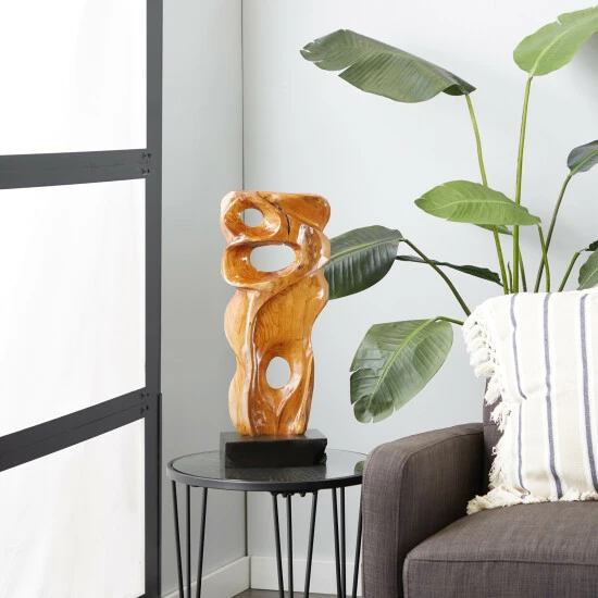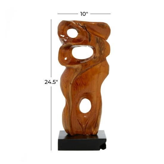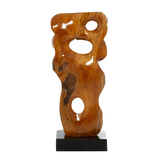 Give your bookshelf, office, night table or coffee table a little whimsy with this sculpture. Let these accent pieces provide a sense of style to your home atmosphere by displaying them on top of a shelf, countertop, mantel, or an accent table . This natural teak wood decor makes a great addition to spaces that need more grounding and a touch nature, complements other wood furniture and decor. Solid sturdy wood with a solid block wood base. This item is shipped in one carton. Due to the handmade nature of this item, no two will be alike, there will be slight differences in shape, size, and color. Suitable for indoor use only. Made in Indonesia. Contemporary design.